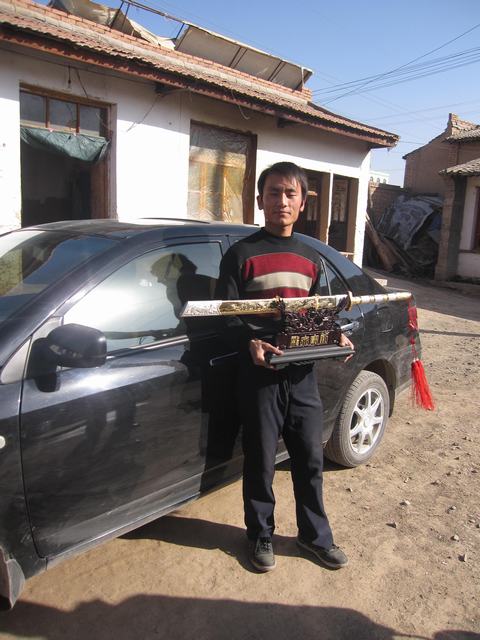 此刀为保安腰刀厂厂长马自正先生历时两个月,荣誉打制的顶级折花刀产品,刀体采用钻头钢和普通钢材混合揉打而成的折花刀品种,刀身布满天然而成的黄河流水纹,刀柄采用优等白银和黄铜纯手工雕刻,仿制乾隆御用宝刀而成!刀身刚柔相济达到折花刀工艺的极致!此刀华贵大气而不失实用,时为内行收藏之上上品!当初马先生一共只打出两把,一把已被蒙古一位先生以极高价格收走,市场售价6万!现为了答谢各位支持保安腰刀工艺的朋友,特以接近成本的价格拍卖此商品!希望大家莫失良机!