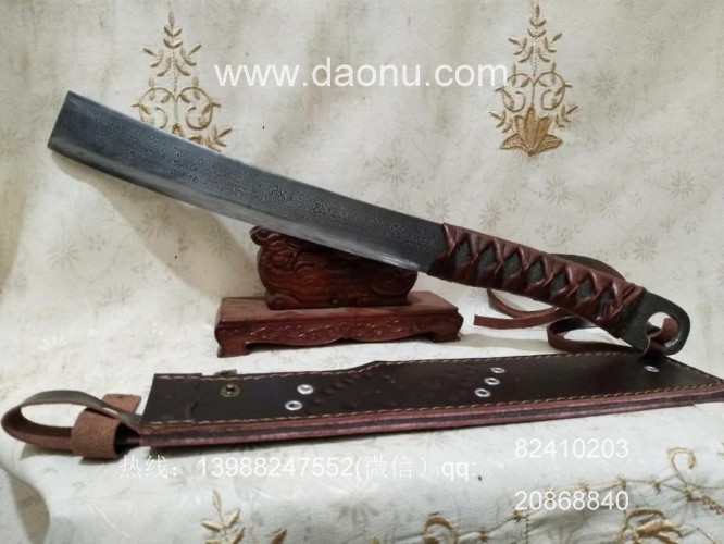 商品名称:户撒刀王阿昌刀之爷爷的柴刀 商品规格:刃长28厘米左右 全长46厘米左右 厚度6毫米左右 商品简介: 【爷爷的柴刀】此把户外防身砍刀一体百炼花纹钢全手工锻打而成,后经匠人配方热处理而成,整体干练紧凑,浑然天成!低调而不失霸道!粗锋砍铁不伤,细锋轻松过竹!配手工牛皮刀鞘!车载户外佳品!【爷爷的柴刀】值得你拥有!