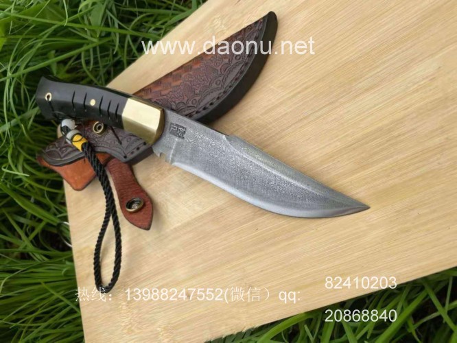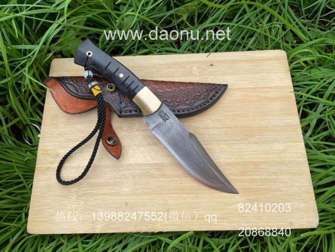 户撒刀名称:户撒阿昌刀王花纹钢铜隔片精品猎刀 户撒刀规格:刃长13CM左右 全长25CM左右 厚度6MM左右 户撒刀简介:此便携猎刀采用特硬花纹钢纯手工锻造,刀型霸气犀利,刀背较厚并开有假刃,增强了此刀的户外穿刺能力,刀身经过匠人反复锻打并祖传配方淬火后,刃口坚硬锋利,轻松刮毛!刀体为一体全龙骨设计,使得此刀在户外可以应对各种极端环境,结实耐用。刀柄为黑檀木手工制作,并配纯铜隔片,更增加了刀的握感和舒适度,此刀配高档牛皮刀鞘,户外更便携美观!