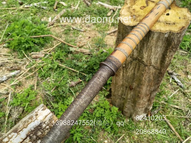 户撒刀简介:此款超长民族款平头刀为项老赛大徒弟采用军用车弹簧板全手工锻打,这把为特制的加长款平头刀,性能一流,非常锋利!刀型采用完全民族做法,有着浓厚的民族风格!刀条为加长锻打,极为富有特点,这把刀收藏把玩练习都非常出色,收藏在家也显得极具特点,喜欢长兵器的朋友不要错过!