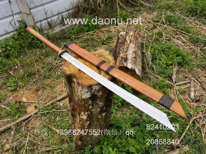 户撒刀名称:户撒阿昌刀王一体全龙骨民族斩马刀 户撒刀规格:刃长64CM左右 全场101.5CM左右 厚度1CM左右 户撒刀简介:此斩马刀为户撒刀王项老赛大徒弟精选高碳锰钢全手工锻打而成,刀型为刀中之霸斩马刀造型,一体全龙骨锻打刀条,结实耐用永不松动!刀条线条流畅,刃口刚柔相济,砍铁不伤!刀鞘刀柄为优质红酸枝手工制作,刀柄增加户撒工艺中非常独特的镶丝工艺,显得更加具有民族特色,并且更加精美!欢迎大家定做收藏! 微信:achangdao