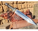 户撒刀名称:户撒阿昌刀王精品一体全龙骨短剑 户撒刀规格:刃长28CM左右 全长45CM左右 户撒刀简介:短剑采用性能极好的户撒红钢全手工锻打,一体全龙骨剑身,刀身千锤百炼后淬火而成,性能非常强悍,轻松砍铁,而且穿刺能力极佳,穿铁皮桶根本不用使劲,护手为实心纯铜纯手工磨制,整体做工效果非常精细紧致,尾端带击锤,户外做锤击使用,配高档手工缝制的牛皮刀鞘,收藏、实用、户外一体的好剑!