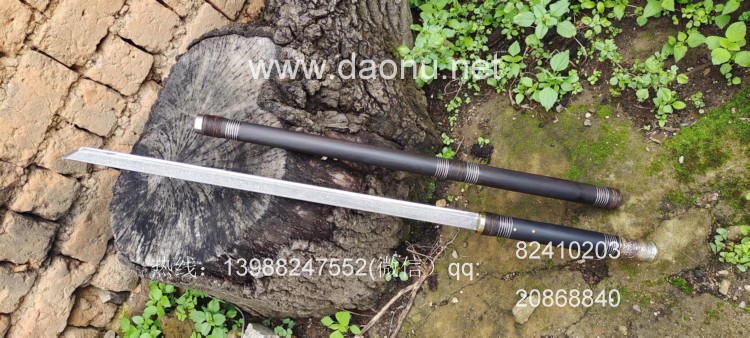 户撒刀简介:这款精品棍刀由户撒优秀刀匠精选特硬百炼花纹钢手工锻打配方热处理而成,这款棍刀外形古朴庄重,平和中隐藏着杀气,合上刀鞘是一根漂亮的防身棍,抽出刀来确杀气腾腾,完全可以用来防身,刀条锻打标准规整,淬火到位性能极佳,刀鞘为优质黑檀木手工制作,外部装饰棕丝并且镶嵌白铜条,整体非常美观大气,刀鞘头部手工加厚钢垫户外可做防身锤击效果,这根棍刀客户收到非常喜欢爱不释手.