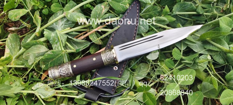 户撒刀名称:户撒刀王(阿昌刀)手工锻打藏式短刀 户撒刀规格:刃长18CM左右 全长31CM左右 厚度6MM左右 户撒刀简介:这款刀刀条按照传统藏刀款式锻打,继承了藏刀穿刺劈砍的优良款式性能,同时刀条一体全龙骨锻造,又加固了原藏刀刀尾细小的不足,而且手感更加舒适,刀条性能极佳,削纸砍铁,手柄装饰缅银配件更让这款刀更具美感!这款刀一经推出爱好者云集,订单络绎不绝,欢迎大家前来定制! 定制咨询请加微信:13988247552