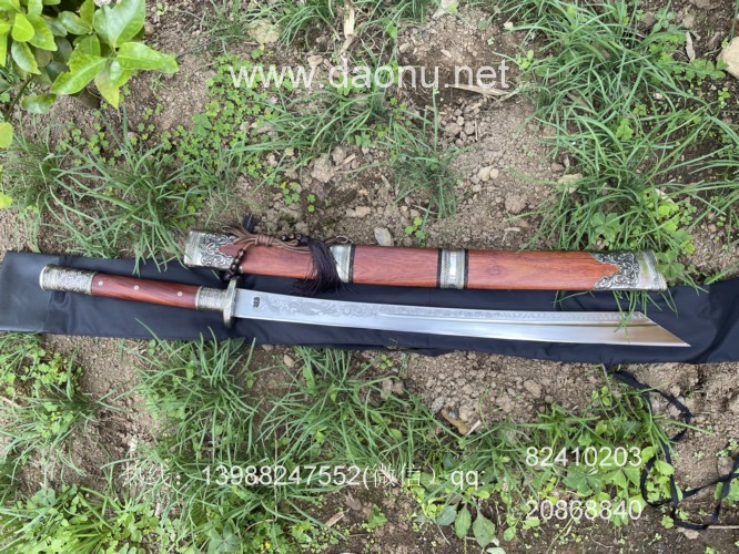 户撒刀简介:户撒刀名匠线乔发锻打的精品斩马刀,户撒红钢手工锻造,性能非常好,斩铁截钉不在话下!斩马刀刀型霸气,劈砍威力强大,自古被为刀中之霸!(每个人都有自己心目中的刀中之霸,不过这种称谓虽然不尽然,也从另一个侧面反映出这种刀在人们心目中的震慑力)刀身线乔发亲自手工雕刻(线乔发的雕刻技术户撒刀匠里数一数二),灵气活现,惟妙惟肖,配以手工精致木鞘外包缅银,古典大气,让人爱不释手。