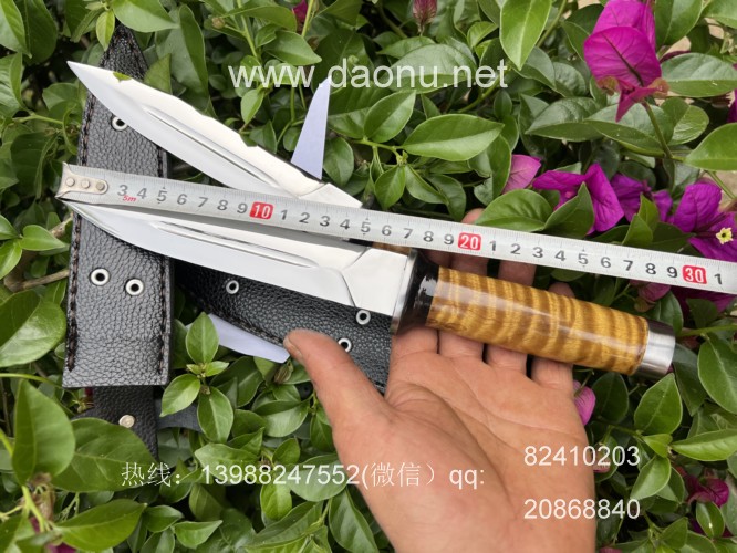 商品名称:户撒刀王(阿昌刀)坦克销钉金丝楠柄短剑 商品规格:刃长17厘米左右 全长29厘米左右 商品简介:剑条采用坦克销钉手工锻打,性能出众,穿刺和切削能力极佳!手柄精选金丝楠木,剑柄有能破窗功能的尾铁,实用性和装饰性都非常出色的一款精品! 微信:13988247552