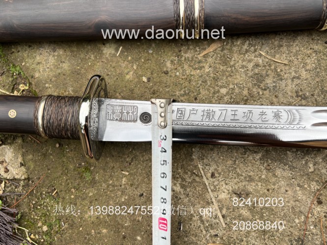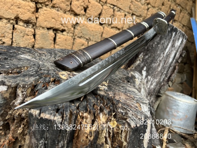 户撒刀名称:户撒刀王(阿昌刀)项老赛手锻绣春刀 户撒刀规格:刃长58CM左右 全长90CM左右 户撒刀简介:此刀为户撒刀王项老赛手工锻造而成,独家淬火技术,刀条实用好用刚柔相济,一体龙骨形制,刀鞘和刀柄为优质黑檀木手工制作,传统棕丝搭配铜条加固刀鞘,民族特色浓郁,刀王项老赛的刀不用多介绍,户撒刀质量标杆。