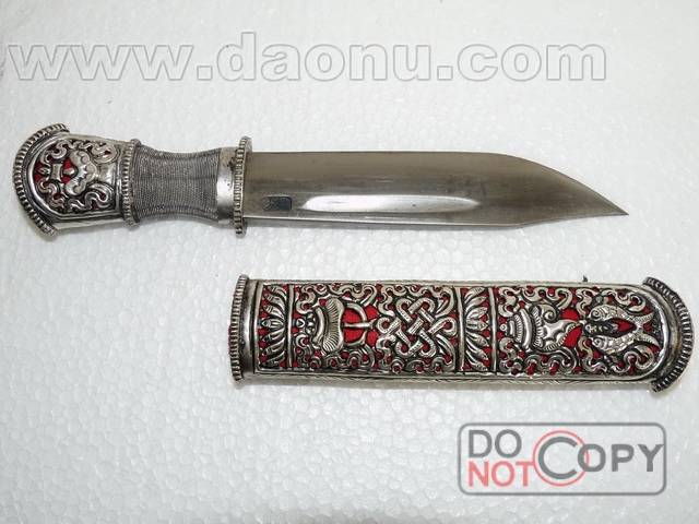 产品名称: 吉祥八宝手工拉孜藏刀 产品型号: zd10 产品规格: 长度为 23cm 产品介绍: 本品为当地著名工匠纯手工打制而成的极品藏刀,藏刀制作精美具有浓厚的民族特色!精细开锋锋利可挂汗毛,实为收藏佳品!刀友朋友请注意,藏刀现今钢火不可砍铁,如做收藏观赏喜欢藏刀文化者可收藏购买。