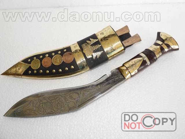 产品名称: 尼泊尔手工弯刀(大) 产品型号: zd18 产品规格: 长36cm,宽6.5cm 产品介绍: 有本地名匠亲自手工打制的尼泊尔弯刀,材质:4玫尼泊尔硬币,特级牛皮,黄铜。精细开锋锋利可刮汗毛,刀整体精致强悍,收藏实用俱佳!刀友朋友请注意,藏刀现今钢火不可砍铁,如做收藏观赏喜欢藏刀文化者可收藏购买。