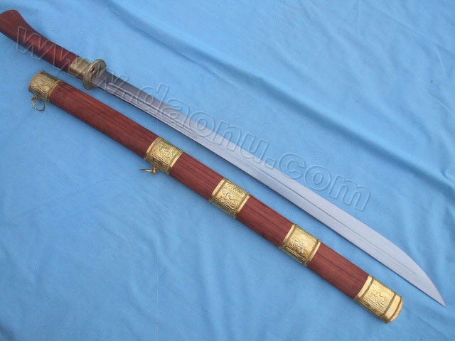 产品介绍: 此刀由户撒名匠全手工打制的精品马刀,刀身采用汽车弹簧钢板手工锻打淬火,刀身精雕龙凤等花纹,精铜红木刀装,全龙骨!可过竹削铁!收藏极品!