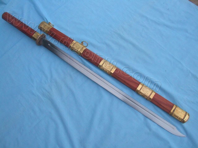 产品介绍: 此刀由户撒名匠全手工打制的精品直刀,刀身采用汽车弹簧钢板手工锻打淬火,刀身精雕龙凤等花纹,红木精铜八方壳刀装,全龙骨,可过竹削铁!收藏极品!