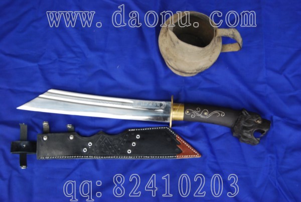 产品介绍: 此刀由户撒名匠线乔发全手工打制的极品黑檀木小砍刀,刀身采用汽车弹簧钢板手工锻打淬火,刀身精雕花纹,并进行手工抛光处理,使刀面更为精致光亮,刀把为当地名贵黑檀木精雕豹头并,刀柄手工镶嵌纯银丝,刀刃锋利实用,极具收藏价值,此刀样式为户撒绝无仅有的一把,今天才正式上到网站,有缘的朋友请迅速了!