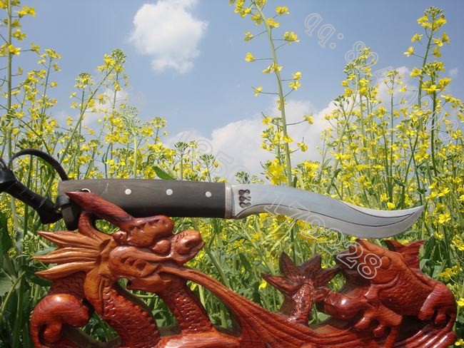 户撒刀(阿昌刀)说明:户撒刀(阿昌刀)全手工打制,韧性和硬度达到高度统一,刃口坚硬刀背稍软,以保证刀在受大力冲击情况下尽量避免断裂,具体手工刀和机制刀的区别大家可参看本网站宝刀资讯栏目了解。手工产品把把略有不同,所以大家看到商品图片时如需订做,所得产品会略有差别(例如雕花、长度或规格等)当然大体不会改变,这也正是手工刀魅力所在。