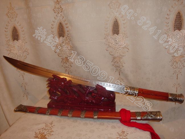 产品介绍: 此刀为极收藏苗刀系列,经户撒名匠线乔发精选优质弹簧钢(也称高锰碳钢),精心打制而成,刀身反复锻打,刃口数次复合淬火,这把极品收藏性苗刀问世,此刀口做工细腻,线条流畅,可砍铁不伤,如果精磨可锋利刮毛,这把刀装为缅甸精品酸枝木(红木中最好的一种木料,油性大,分量重,在北方干旱情况下不开裂,本站极品刀剑都推荐此种木料)此刀刀装也是一个亮点,整体包优质缅银,刀装师傅也是户撒最好的师傅,配合名匠乔发的高超手艺,整刀更显贵族气息和王者风范。收藏极品,不可多得。此刀已售,开始预订。