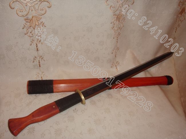 产品介绍: 此剑为户撒刀名匠线乔发精心打制的传统酸枝木六面剑,这把刀装为缅甸精品酸枝木(红木中最好的一种木料,油性大,分量重,在北方干旱情况下不开裂,本站极品刀剑都推荐此种木料)外缠传统综丝,剑身为优质高锰碳钢反复锻打多次淬火而成,剑身古朴庄重,刃口锋利坚硬,砍铁不伤。精品收藏!