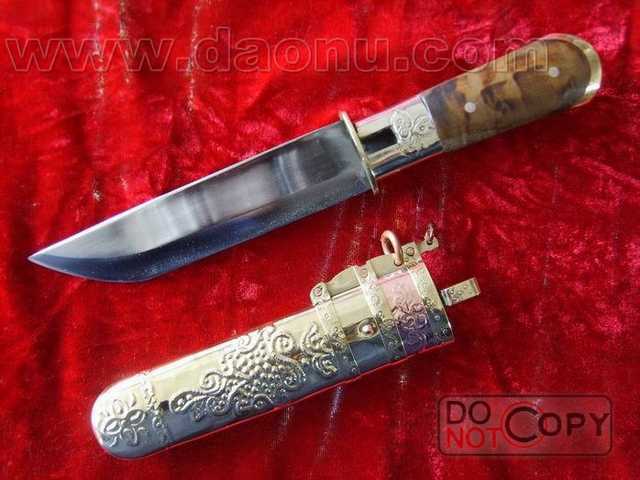 龙汉刀刀是保安族腰刀中最为著名的腰刀之一。它集 波日季刀耐用的性质,又有 十样锦刀的华丽,显得华丽、美观、精巧。到目前为止,此刀刃比一般刀厚,份量也有所增加。是目前保安腰刀中最为畅销、耐用、华丽集一身的刀具。本地很多人送朋友或送客户,或自己把玩,购买的都是这款刀。