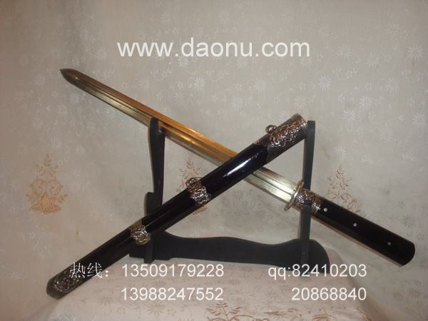 产品介绍: 此刀为户撒当今宝剑之极品系列,经户撒名匠黎有兴采用本站独家进口的特殊钢材精心打制而成,这种钢材锻打难度极高,经过不断实践反复锻打,刃口数次特殊方法淬火,此剑横空出世,宝剑做工细腻,线条流畅,刃口硬度极高,反复淬火回火后刃口达到刮毛还能砍断铁丝的境界,刀身防锈能力也大大超过户撒当地的高弹锰钢系列,收藏价值也进一步提高。此剑剑鞘采用名贵乌木外包缅银,此刀刀装也是一个亮点,整体包优质缅银,刀装师傅也是户撒最好的师傅,使整刀显王者风范!收藏极品,不可多得。