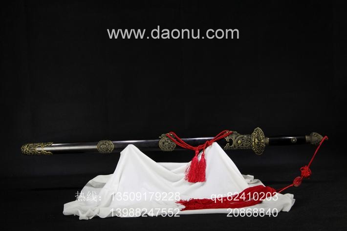 【工艺】剑身采用精炼地基钢全手工折叠锻造,经过淬火、回火等热处理工艺,十三道手工古法研磨,刃纹流畅,全开刃可以削纸。高档馈赠礼品!