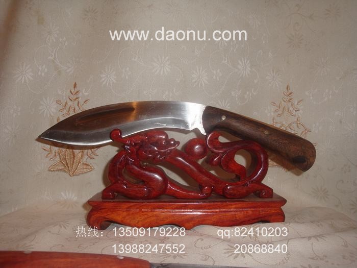 户撒刀(阿昌刀)说明:户撒刀(阿昌刀)全手工打制,韧性和硬度达到高度统一,刀采用局部淬火,刃口坚硬刀背稍软,以保证刀在受大力冲击情况下避免断裂,具体手工刀和机制刀的区别大家可参看本网站宝刀资讯栏目了解。手工产品把把略有不同,所以大家看到商品图片时如需订做,所得产品会略有差别(例如雕花、长度或规格等)当然大体不会改变,每把刀都是独一无二的,每把刀都倾注了刀匠独特的审美观和灵魂,这也正是手工刀魅力所在。