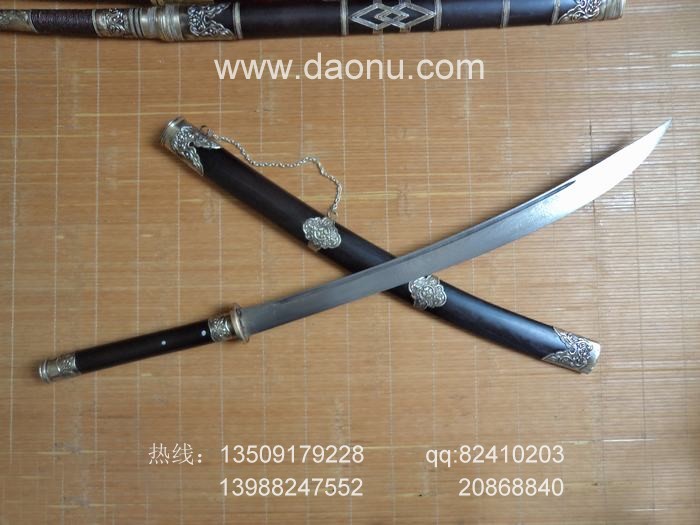 制作工艺:进口钢材提炼锻打折打工艺 精密淬火 流水纹 传统精装乌木鞘 精包缅银
