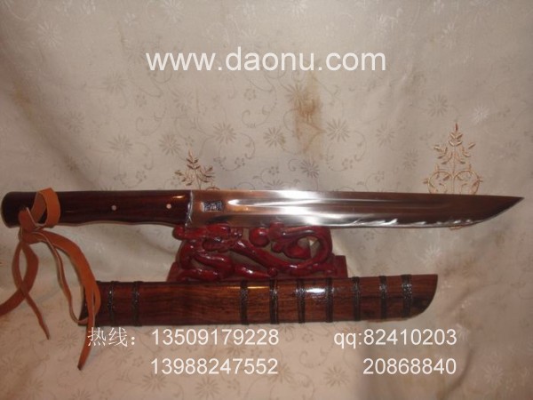 商品规格: 全长55CM左右 刃长:35CM左右 刀刀背厚:7-8MM左右 刀鞘乌酸枝缠棕