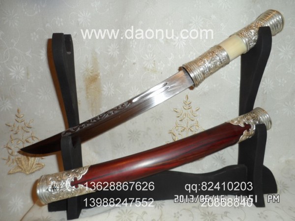 商品名称: 户撒刀王(阿昌刀)极品纯银小叶紫檀装小刀(极其珍贵小叶紫檀刀装 配真品象牙和翡翠)
