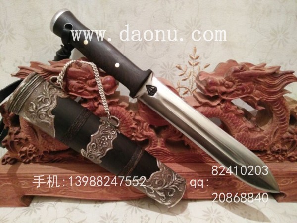 商品介绍: 此极短剑为户撒顶级收藏作品。采用本站独家进口的高档钢材锻打而成!此钢材锻打方法特殊,需经过长时间反复锻打,后配方淬火而成。短剑造型古典精美,双面开锋,刃口锋利坚硬,在非常锋利的同时可削铁,此刀为经典高档刀装,刀鞘采用进口非洲黑檀木,刀条全龙骨一体设计,尾端加钢垫,在户外可做敲击硬物,更增加了实用性,刀鞘装具为99纯银做旧,户外携带极其方便。户撒刀收藏级作品!