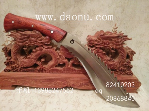 产品介绍: 此刀由本站设计户撒优秀刀匠全手工打制的精品丛林狼牙狗腿,刀身采用优质军用汽车弹簧钢板全手工反复精锻而成,刃口采用户撒传统配方淬火,刃口坚硬锋利,刀型采用户外最常用的狗腿型,刀背带齿,方便对付复杂环境,割断荆棘,刀柄采用了最为结实耐用的全龙骨设计,刀柄尾端也采用加大设计,大力挥砍不会脱手。此刀劈砍有力手感舒适,性能手感极好,是专为广大驴友和户外运动者量身定做的理想开路刀具。此刀刀鞘采用本站独家定制的双层纯牛皮,非常结实耐用。户外运动者不容错过。