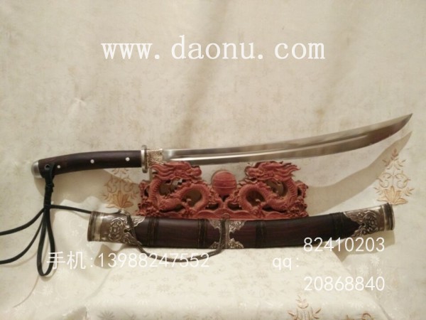 商品介绍:此极品大明护卫腰刀为户撒刀名匠杨茂芳全手工精心打制,刀匠制作工艺精湛,处理手法细腻,此刀刀型为大明护卫腰刀造型,长短适中,刀条精挑军用弹簧钢纯手工千锤百炼而成,独到配方淬火,宝刀鼎成,刀条刚柔相济,粗锋砍铁不伤, 细锋轻松过竹子,性能极佳,刀柄采用最为结实耐用的全龙骨制式,并尾端手工加钢,在野外还可当敲击使用!刀柄刀鞘精选缅甸黑酸枝木,防开裂性极佳!刀鞘不仅手工包缅银,另加以最结实耐用的纯手工经缠棕丝,使得刀鞘更加坚固耐用。精良制作!此刀手感极好,欢迎大家选购!