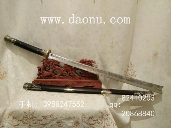 商品名称:户撒刀王(阿昌刀)极品黑檀全龙骨甩毛巾苗刀民族款(线乔发)
