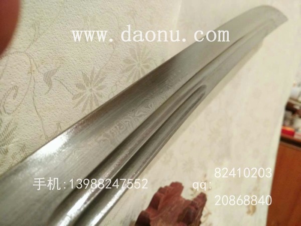 商品介绍: 此刀为户撒刀名匠杨茂芳纯手工锻打刀身,采用精选特硬花纹钢全手工锻打,刀型为传统苗刀刀型,刀型流畅,超长一体龙骨刀身,刃口千锤百炼,坚硬锋利,粗锋砍铁不伤,细锋锋利刮毛,刀柄与刀身一体龙骨制作结实耐用,刀柄尾端手工加钢锭,在户外可做锤击使用,独家设计!刀鞘为上等牛皮纯手工缝制,刀柄加非洲黑檀木或者缅甸黑酸枝,高端大气!此刀手柄长,练武户外皆可,收藏把玩不可多得的好刀!