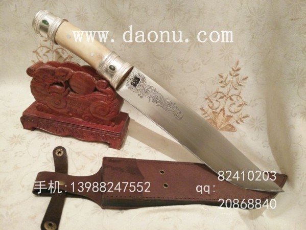 宝刀名称:户撒刀王(阿昌刀)极品鹿角纯银翡翠博伊刀(线乔发)