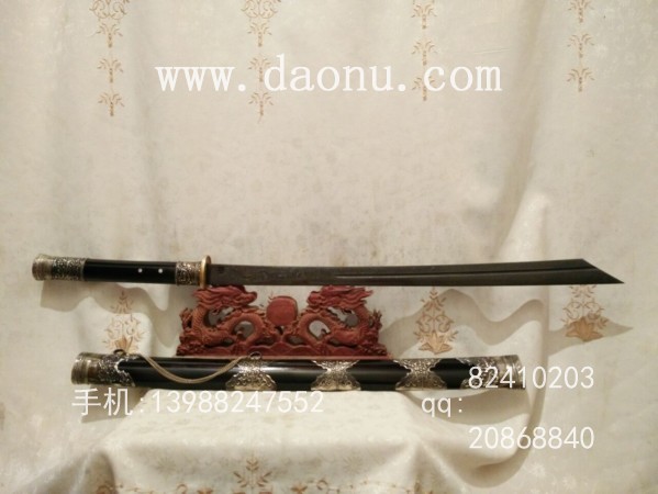 商品说明:此刀为户撒传统斩马刀类型,由户撒刀第一名匠线乔发采用精挑特硬花纹钢,全手工千锤百炼锻打而成,刃口局部配方淬火,刚柔相济!刃口坚硬锋利,粗锋轻松砍铁,细锋过竹削铁,手感配重极好,实用收藏俱佳!刀装采用优质非洲黑檀木,外包缅银,配置一流,高档大气!斩马刀刀头略宽,威力巨大!在古代用来砍断马腿之用,手持宝刀威风凛凛!