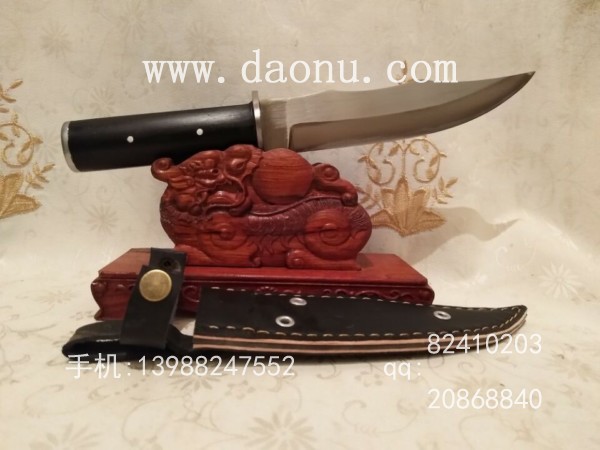 商品介绍:此刀有本站投资商独家进口的高档进口钢材纯手工锻打而成,相对于其他钢材,此种钢材硬度和防锈能力更为提高,可以达到接近刮毛而砍铁不伤的性能指标,因钢材硬锻打难度和特殊淬火技术要求更高,因此产量有限,此刀设计短小精悍,刀体设计独特犀利,刀条一体全龙骨,尾端手工加钢,户外可做敲击使用,刀柄为优质非洲黑檀木,极品好刀,大家抓紧时间订购,订购热线:13988247552(微信) qq:82410203
