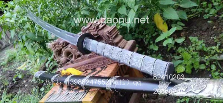 户撒刀简介:此刀为户撒刀省级非物质文化传人杨茂方全手工锻打而成,此刀钢材采用特硬百炼花纹钢一体锻打而成,也是互联网上第一把刀柄和刀身通体一体锻打长刀!此刀为传统马刀制式,整刀采用特硬百炼花纹钢纯手工锻打,千锤百炼后配方淬火而成,淬火过程复杂,需凭经验肉眼观察火猴掌握温度和时机对刀条进行局部淬火,这点一般的刀匠是难以做到的。淬火时机恰到好处后刀条会刚柔相济,硬度和韧性高度统一,刃口坚硬锋利,刀身较软,这样的刀会经久耐用,手工反复多次锻打刀刃又会使刃口部分更加紧密坚硬,更增加了钢材硬度,这也是机制刀无法达到的。此刀不同网上其他刀的是整刀完全一体锻打,包括刀柄,刀柄手工磨制成竹节形状,既非常美观而且手感也会非常好,并且这样通体锻打根本不存在刀柄坏或者松动等诸多问题,刀鞘为优质黑檀木包缅银装具!此刀一出立即获得诸多刀友的热烈欢迎,订购者络绎不绝,工期25-30天左右,大家抓紧时间定制收藏!