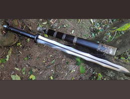 户撒刀说明:此刀为户撒刀省级非物质文化传人杨茂方全手工锻造而成,刀条采投资商独家提供的高档进口钢材,此种钢材在经过多重进口钢材对此测试以及和当地各种钢材测试中硬度和防锈能力来说是户撒当今最为顶尖性能的钢材,没有之一。经过反复锻打和独特淬火方法后,钢材可以在锋利状态下砍铁,这点是其他钢材所难以做到的,此剑采用独特波浪形刃口,刃口长度和坚固度都更为加强,刀条一体全龙骨制作结实耐用,尾端手工加钢,必要时可做锤击使用,刀柄刀鞘为高档非洲黑檀木手工制作外包缅银更显高档贵气,是送礼收藏实用的不二选择!