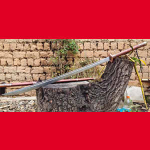 户撒刀简介:此全龙骨加长沧州苗刀为户撒刀省级非物质文化传人杨茂方手工锻打而成,刀条采用优质军用车弹簧板全手工锻打并配方淬火而成,刀条结构为一体全龙骨结构,如此设计也可以使长刀的中心靠后更利于练习和使用,刀型采用经典沧州苗刀刀型,修长犀利,刚柔相济!此刀性能极为出众,过竹砍铁不在话下,刀身手工雕刻猛虎下山图案,更增加了刀的工艺价值和霸气!刀柄和刀鞘采用优质缅甸红酸枝手工制作,刀鞘刀柄包做旧红铜,护手也采用红铜手工制作,使得此刀从各个方面都达到了优质优良的制作标准,使用者得到此刀后爱不释手,后面接连定制!欢迎广大刀友和武术爱好者收藏定制!