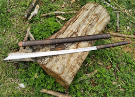 户撒刀简介:此刀为项老赛大徒弟亲自锻打制作,刀体款式为兵器之霸斩马刀刀型,刀条用军用解放车弹簧板锻打并配方淬火,性能一流刚柔相济,这款刀为客户定制,需要刃口极端锋利,达到甩断干毛巾的效果,这种刀锻打就需要过硬的技术,经过匠人精心制作宝刀鼎成,亲自测试可以一刀摔断十条干毛巾!令人叹为观止!此刀刀柄刀鞘为户撒最为传统的综丝缠绕,百年不坏!欢迎大家定制收藏!