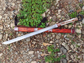 户撒刀简介:环首刀又叫又做“环柄长刀”,诞生我国西汉时期是当时世界上最为先进、杀伤力最强的近身冷兵器,也是人类历史上具有非凡意义的一种兵器。某种程度上可以说是环首刀将匈奴打败,并间接促成了当时的欧亚民族大迁徙。 这款环首刀采用军用车弹簧板手工锻打后配方淬火而成,性能极佳,劈砍穿刺都具有强大的威力,刀柄采用野生鹿角贴片,手感厚重防滑,也增加了刀的收藏功能,刀鞘为优质红酸枝,外包红铜加固件而成,结实耐用古香古色,整刀非常具有古朴华贵的独特韵味,值得收藏。
