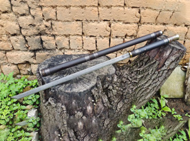 户撒刀简介:这款精品棍刀由户撒优秀刀匠精选特硬百炼花纹钢手工锻打配方热处理而成,这款棍刀外形古朴庄重,平和中隐藏着杀气,合上刀鞘是一根漂亮的防身棍,抽出刀来确杀气腾腾,完全可以用来防身,刀条锻打标准规整,淬火到位性能极佳,刀鞘为优质黑檀木手工制作,外部装饰棕丝并且镶嵌白铜条,整体非常美观大气,刀鞘头部手工加厚钢垫户外可做防身锤击效果,这根棍刀客户收到非常喜欢爱不释手.
