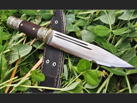 户撒刀简介:这款刀刀条按照传统藏刀款式锻打,继承了藏刀穿刺劈砍的优良款式性能,同时刀条一体全龙骨锻造,又加固了原藏刀刀尾细小的不足,而且手感更加舒适,刀条性能极佳,削纸砍铁,手柄装饰缅银配件更让这款刀更具美感!这款刀一经推出爱好者云集,订单络绎不绝,欢迎大家前来定制!