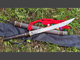 户撒刀名称:户撒阿昌刀一体龙骨黑檀木小苗刀(线乔发)