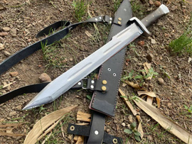 户撒刀简介:这款刀刀型采用经典的蝎子战刀原型,刀身采用军用解放车弹簧板手工锻打,刚柔相济性能强悍,刀型霸气犀利,可刺可砍,威力强大,过竹砍铁不在话下,轻松穿铁皮桶,一体全龙骨锻造结实耐用!