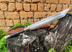 户撒刀简介:这款刀为百炼花纹钢手工锻造的锦衣卫大刀,前宽后窄劈砍力非常巨大,刀刃经过匠人配方淬火后刃口坚硬刀身相对较软以达到刚柔相济的之性能,此刀相对较重,砍断钢筋毫不费力,是一把收藏把玩的好物!