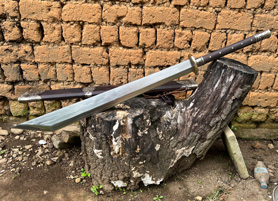 户撒刀简介:这款刀是给客户定制的一把超大锦衣卫刀,非常厚重,客户用来锻炼身体和镇宅把玩,军用解放车弹簧板一体全龙骨手工锻造,结实耐用性能超群,螺纹钢筋能轻松砍断,刀鞘刀柄为优质黑酸枝木手工制作,外包缅银,非常值得收藏的一把镇宅宝刀!我们网上给客户做刀快二十年了,有着深厚的制作经验,注重细节,欢迎大家选购。