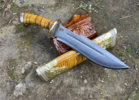 户撒刀简介:户撒传统工艺纯手工锻造的精品水波纹金丝楠木猎刀,百炼花纹钢精锻刀条,一体全龙骨锻造刚柔相济性能出众!刀鞘刀柄为极品水波纹金丝楠木手工制作,外包黄铜,皇家气质!短刀收藏极品,不要错过!