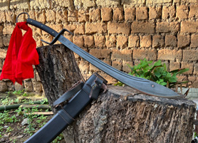 户撒刀简介:百炼钢一体全龙骨锻造刀身,传统配方淬火而成,性能极佳,所有尺寸和宽窄都经过客户数月精心推敲设计配重手感一流!黑檀木刀鞘采用素装不带加固金属配饰,在保持同样强度下更加不容易制作,设计极为合理的一把传世宝刀!