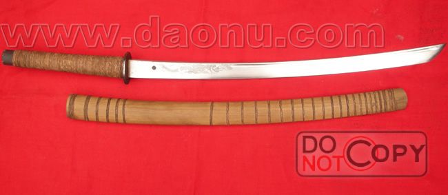 产品名称: 阿昌传统单龙马刀(项老塞制) 产品型号: ma99 产品规格: 全长93*刀长90*把26CM 产品介绍: 由刀王项老赛精心亲制,刀锋硬度在60hrc以上,刀锋异常坚硬,棕丝把楠木全壳,比赛级用刀,可砍铁不伤。